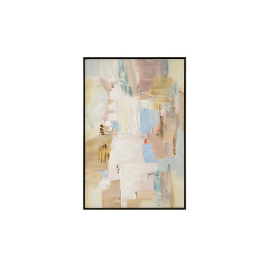 This framed painting introduces understated elegance through its carefully composed palette of soft pastels and muted earth tones. The layered brushwork creates tactile depth, while a carefully placed blue accent prevents the composition from feeling flat or predictable. Lumin's abstract design balances warmth with visual lightness, making it an ideal choice for spaces seeking contemporary sophistication without visual heaviness. The textured surface and luminous quality of the neutral tones add dimension to any wall, offering both refinement and subtle visual interest.