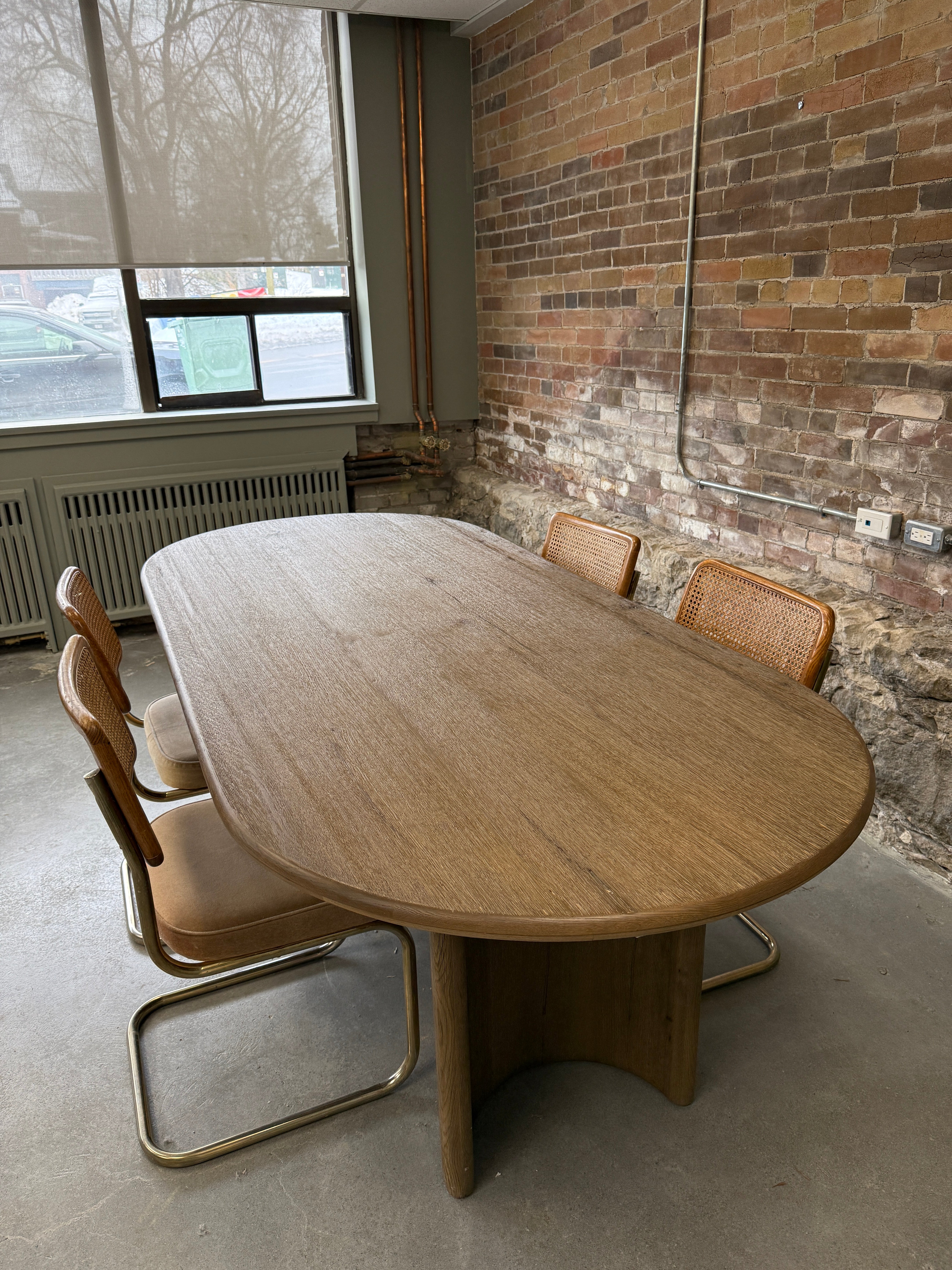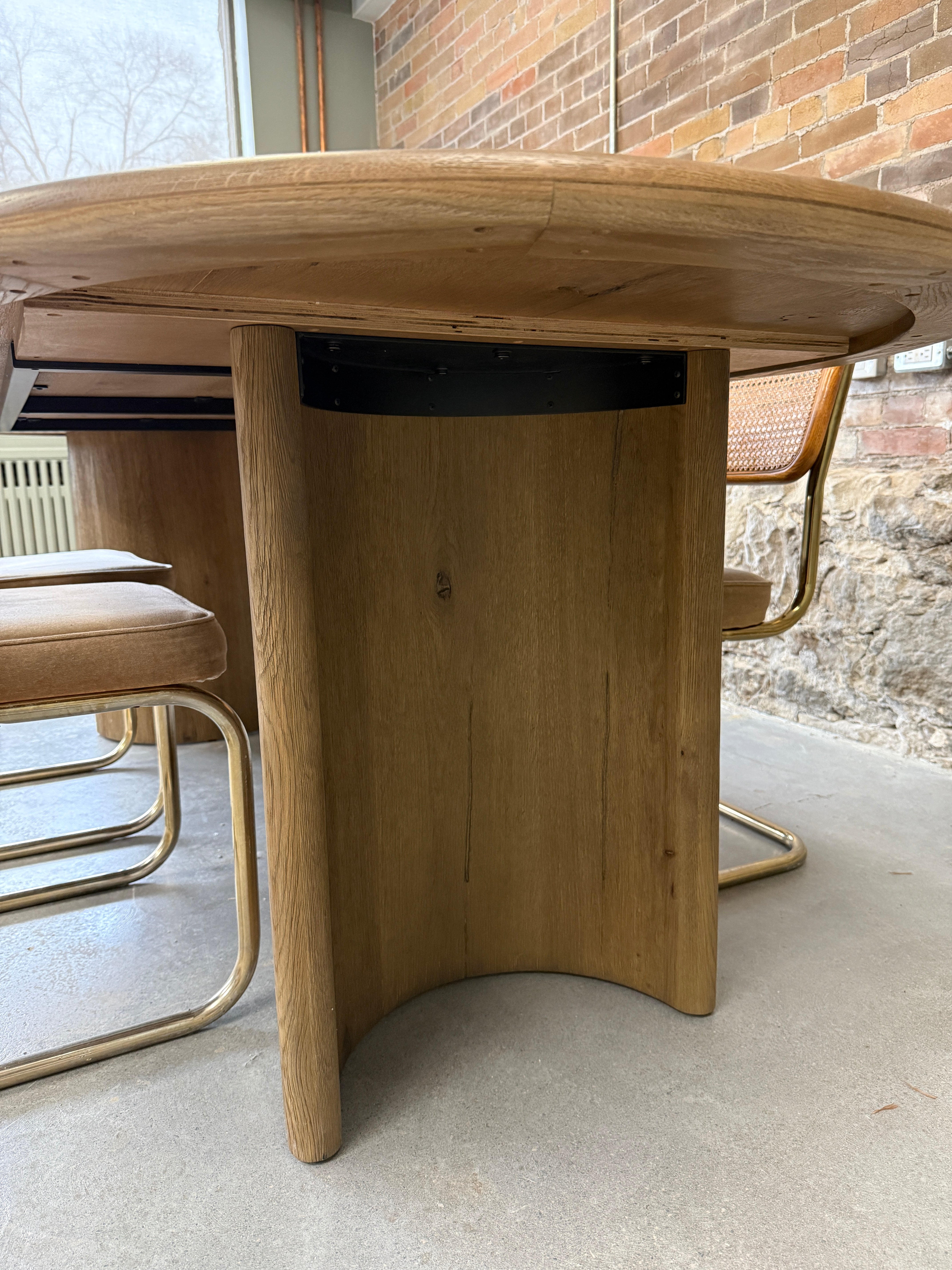 Introducing the Palmer Dining Table, a statement piece that brings organic presence to your dining room. With its crescent-shaped legs and sprawling oval tabletop crafted from oak or acacia, this table is a study in shape. Elevate your dining experience and add a touch of elegance with this luxurious and exclusive piece.