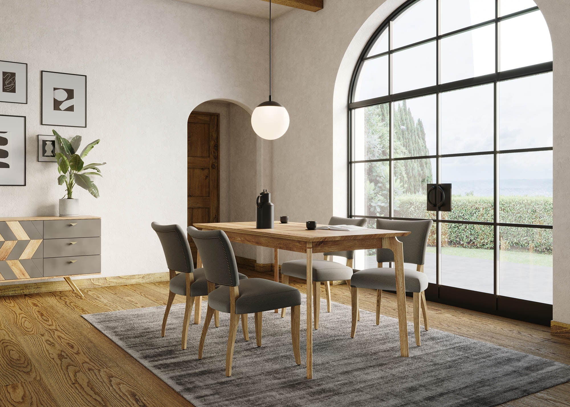The Kent Dining Table is crafted from solid wood in Black, Brown, or Natural finishes. Versatile and durable, it serves as a reliable centerpiece that coordinates with any dining aesthetic.