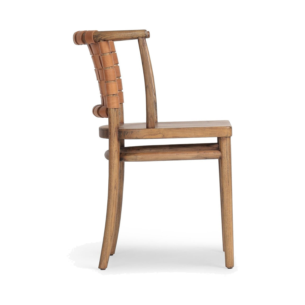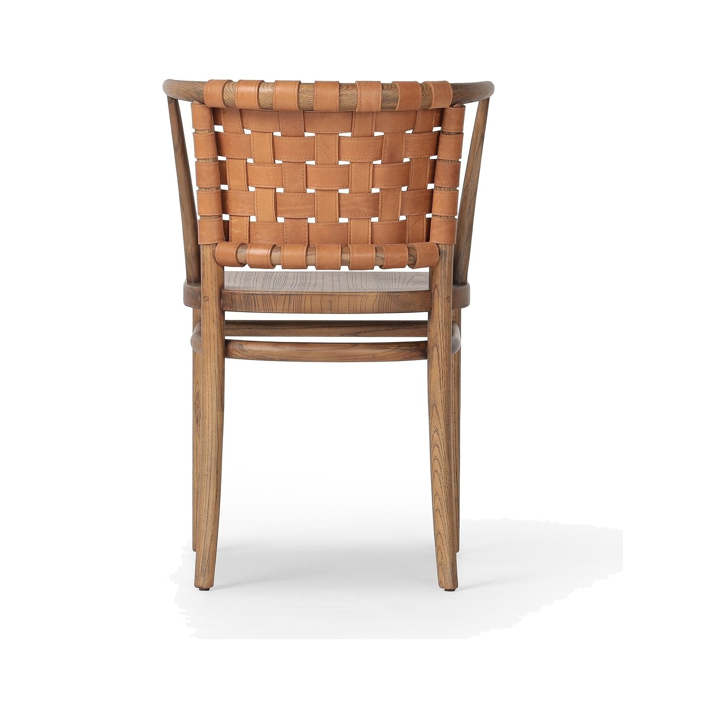 Bring contemporary elegance to intimate dining spaces with this thoughtfully scaled bistro chair. The distinctive barrel seatback showcases supple woven leather, beautifully complemented by warm toasted nettlewood framing. A refined choice for those seeking classic style without overwhelming compact rooms.