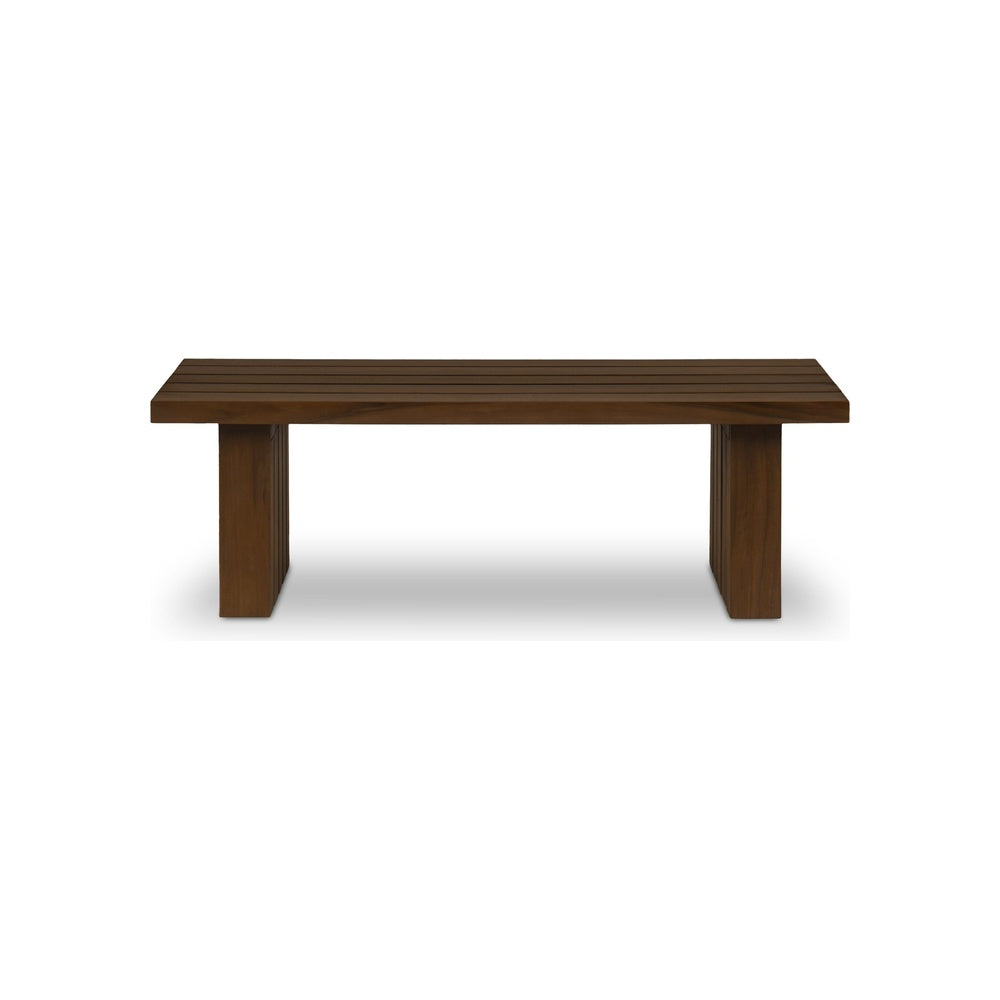 The Denbie Outdoor Coffee Table combines minimalist design with natural durability. Its slatted teak surface allows light and air to pass through while showcasing warm, authentic wood character. Sturdy square post legs keep the design clean and uncluttered, making it an elegant centerpiece for patios, decks, or living rooms that values both function and refined aesthetics.