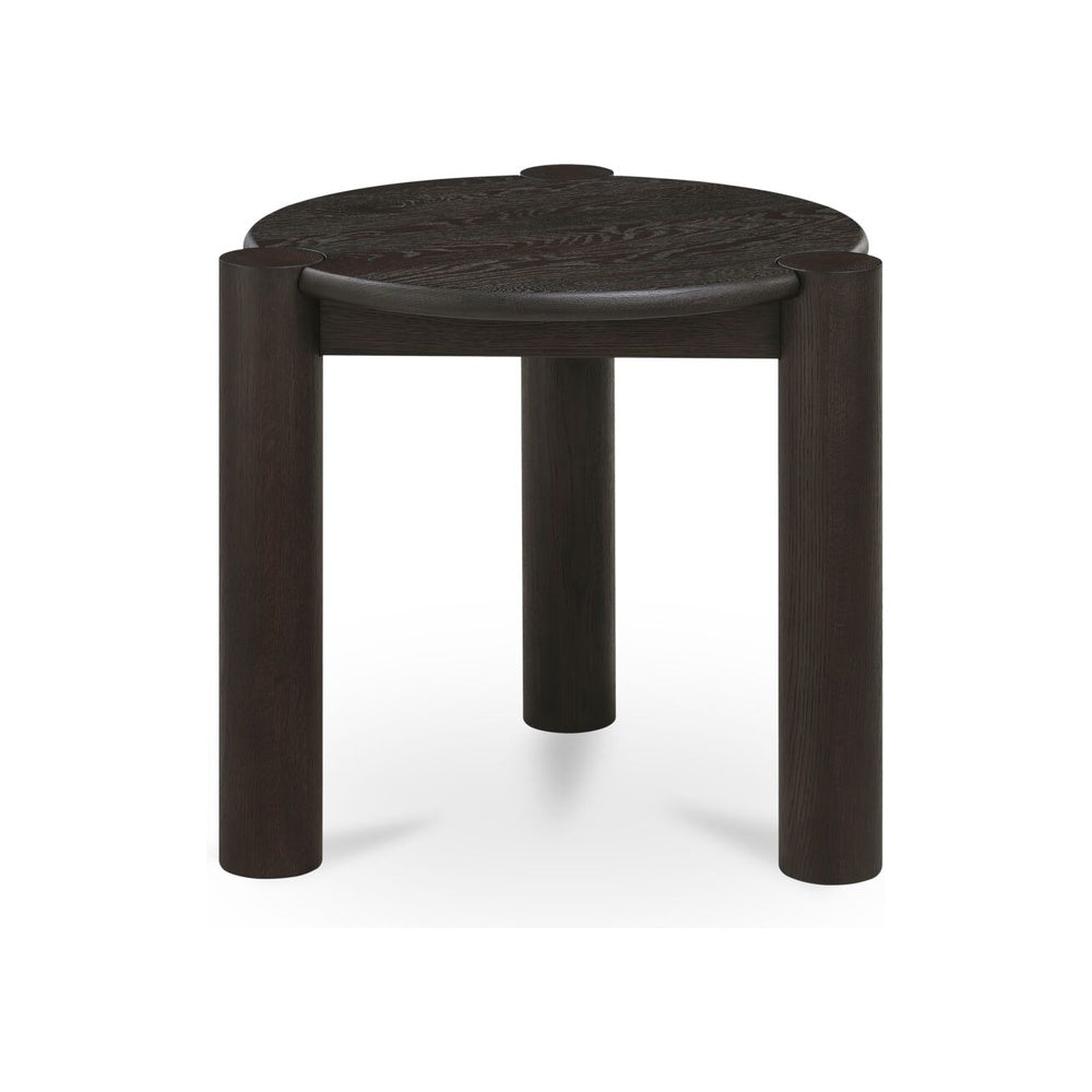 Jax Side Table exemplifies considered design through the marriage of organic geometry and deliberate structural expression. A solid oak tabletop featuring a refined bullnose edge rests upon four sculptural column legs, unified through distinctive joinery that celebrates craftsmanship. The rounded silhouette achieves equilibrium between fluid curves and architectural presence, while the natural finish emphasizes the wood's inherent character and patina potential. This side table functions as both functional surface and sculptural accent, commanding visual interest through proportional restraint and material authenticity.