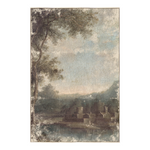 Immerse your space in the serene charm of the "1864 Italian Landscape" Framed Art Print. Featuring soft greens and creamy blues, this print evokes a romantic Italian vista with a timeless fresco-like texture and carefully distressed creases. Painted originally in 1864, the artwork’s aged character enhances its historic beauty and depth, making it an expert choice for those appreciating classic European art in their décor.