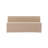 Indulge in luxurious dining with the Abram Slipcover Dining Bench. Featuring a sculptural shape with clean lines and oversized dome-shaped arms, this bench adds an elegant touch to any dining room. The tight construction allows for easy maintenance with a fully removable, machine-washable slipcover handmade from a natural, resilient 100% flax/linen blend. Velcro attachments ensure a precise fit, making this bench both practical and stylish.