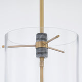 Combining a unique mix of materials with the classic and familiar look of a lantern, this pendant is sure to stand out. With a glass cylindrical shade housing a set of marble candlesticks with brass accents makes for a refreshing look that compliments any style. Due to the one-of-a-kind nature of this light, exact colours and patterns will vary slightly.