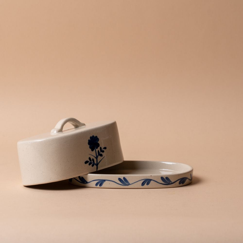 Elevate your kitchen with the Blue Floral Stoneware Butter Dish, where sweet details meet timeless design. Crafted from durable stoneware, its classic blue floral pattern adds a refined touch, making it a charming piece you'll proudly display. Perfect for keeping butter fresh while enhancing your table setting with understated elegance.