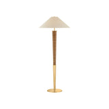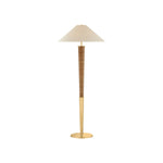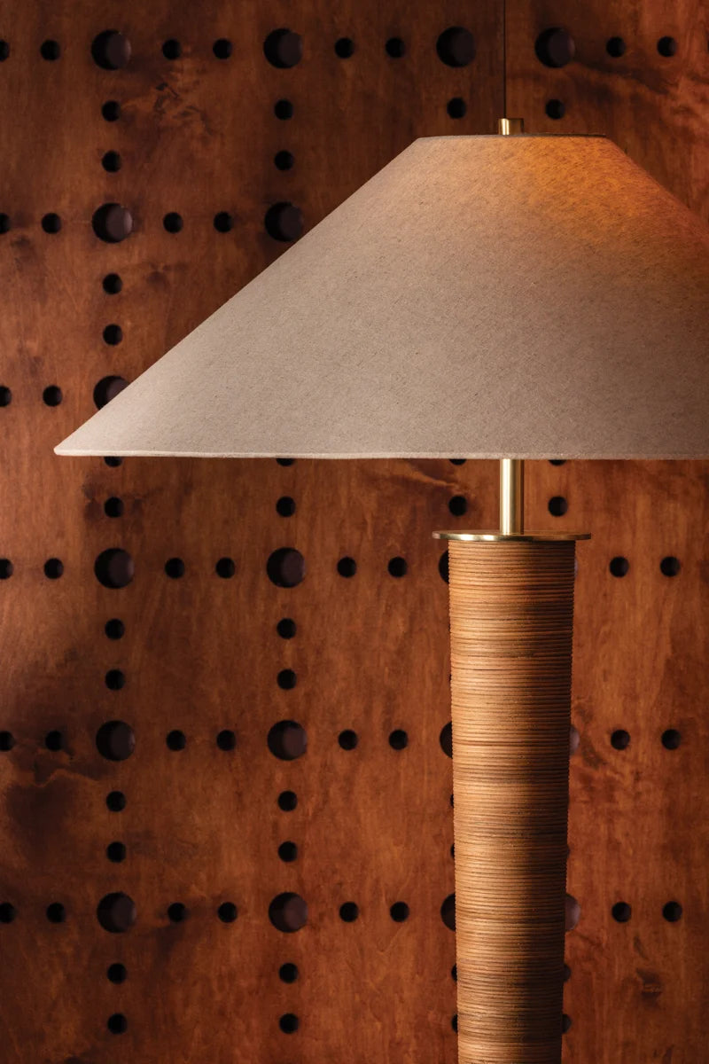 The Bohicket Floor Lamp commands attention with its impressive size and distinctive combination of materials. A subtle natural linen shade complements the prominent Aged Brass base, which is intricately wrapped in rattan. Generously proportioned for spacious rooms, this textured lamp brings both versatility and a playful character to studies, bedroom nooks, or casual living areas.