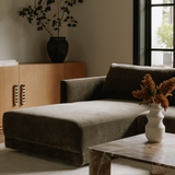 The Brienne Sectional effortlessly combines style with sustainability. Its larger profile, finished in boucle, velvet, and wool blend, exudes warmth and traditional, heirloom-like qualities. Its GRS© certification ensures the use of recycled material, while its FSC®-certified wood frame guarantees responsible sourcing and production. Improve your living space with this eco-friendly, luxurious sectional.