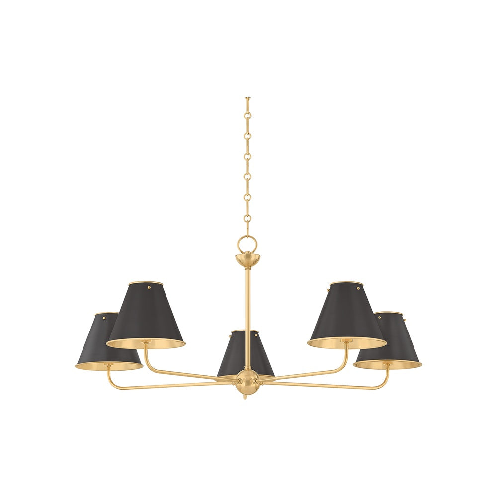 The Burghley collection embodies a refined, tailored design with streamlined metal shades and clean lines. Incorporating Mark D. Sikes’ distinctive brass ball motif and elegant bolts that fasten the shades, Burghley revitalizes classic heritage shapes. Available in Aged Brass paired with Off White or Distressed Bronze, the 5-light chandelier and 2-light linear fixture introduce a subtle sophistication suited to both contemporary and traditional settings.