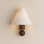 A petite sconce with a large presence, Candice pairs a distinctive turned wood stem with a white linen half-shade. The polished wood evokes a sense of heritage and craftsmanship, enhanced by the decorative shaping. An Aged Brass reflector beneath the shade creates a soft, warm glow, adding to Candice’s antique-inspired charm.