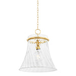 This stunning pendant features a a classic silhouette in clear optic glass with a swirl pattern. The subtle lines in the swirled glass refract light and cast a soft glow when lit. A metal ring at the top of the class draws the eye up, and adds a little shimmer. With both traditional and modern elements, this pendant is perfect for any style.