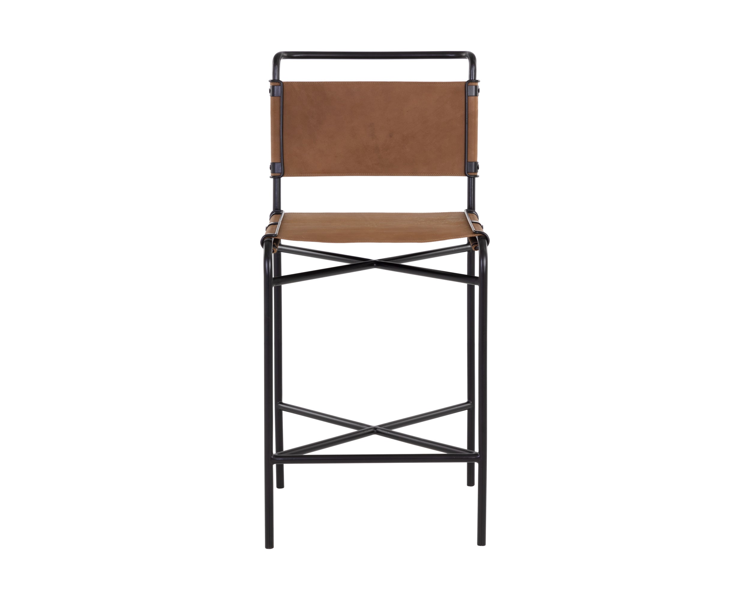 Combining mid-century modern style with subtle industrial influences, the Corrian Counter Stool enhances any setting with its elegant presence. It features rich cognac leather upholstery paired with a sleek matte black steel base. Constructed from 100% natural leather, this piece naturally exhibits variations in color, markings, wrinkles, grooves, and minor scratches, making each stool uniquely individual. Handmade in India by skilled artisans, it reflects meticulous craftsmanship, with distinctive imperfections such as fissures and color variations that contribute to its singular charm. For guidance on maintaining its beauty, please refer to our Product Care page.