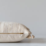 Our Cream Tussar pillow cover is a neutral stunner with a blend of silk and wool, handwoven in India. Subtle texture, a small woven motif and tassel trim make this cover a perfect accent to any space. Neutral in colour, it easily pairs with your existing decor. Handwoven by artisans in India, these covers are a true work of art and history.