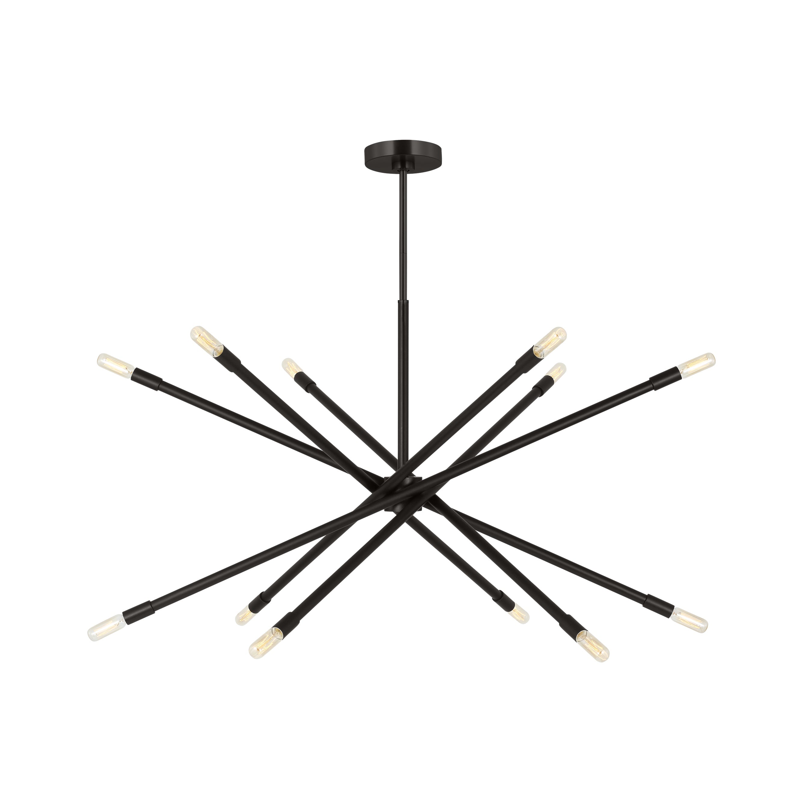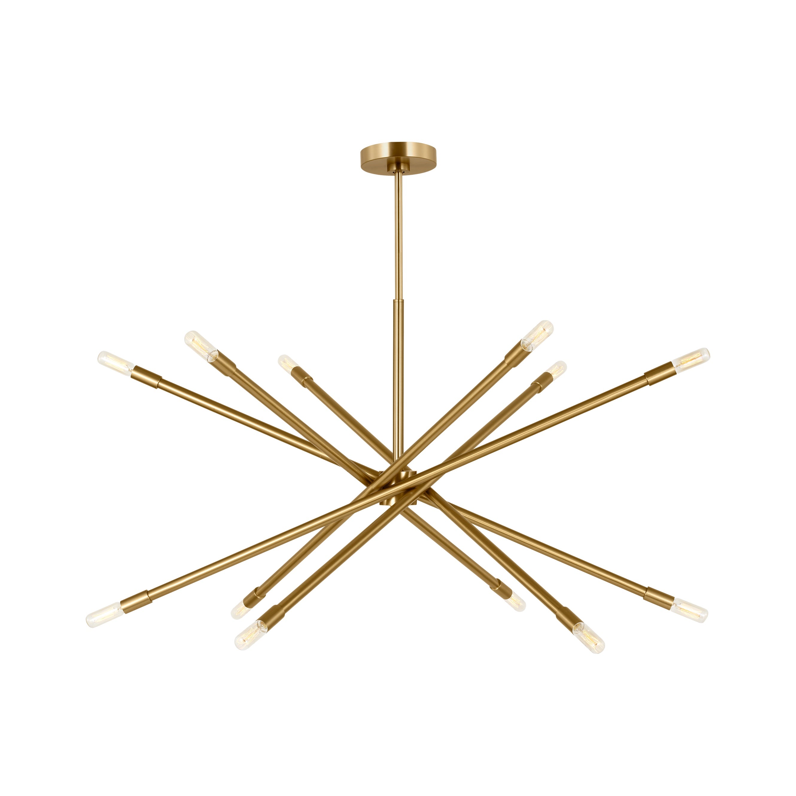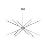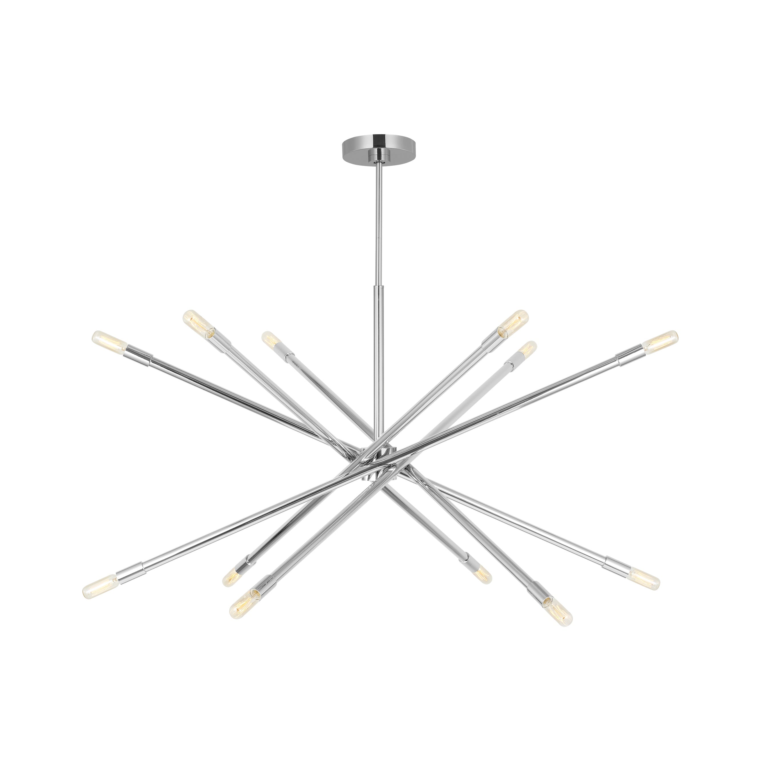 The Eastyn Chandelier from Chapman & Myers presents a bold interpretation of modern geometric design with its starburst motif. Thin metal arms extend outward, each ending in refined bulbs that provide a soft, balanced illumination. Rated for damp environments, it comes in Burnished Brass, Polished Nickel, or Midnight Black finishes, complementing diverse décor styles. Supported by a circular canopy, this fixture adds a sculptural, contemporary elegance to dining areas, foyers, or living rooms.