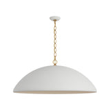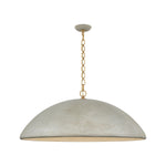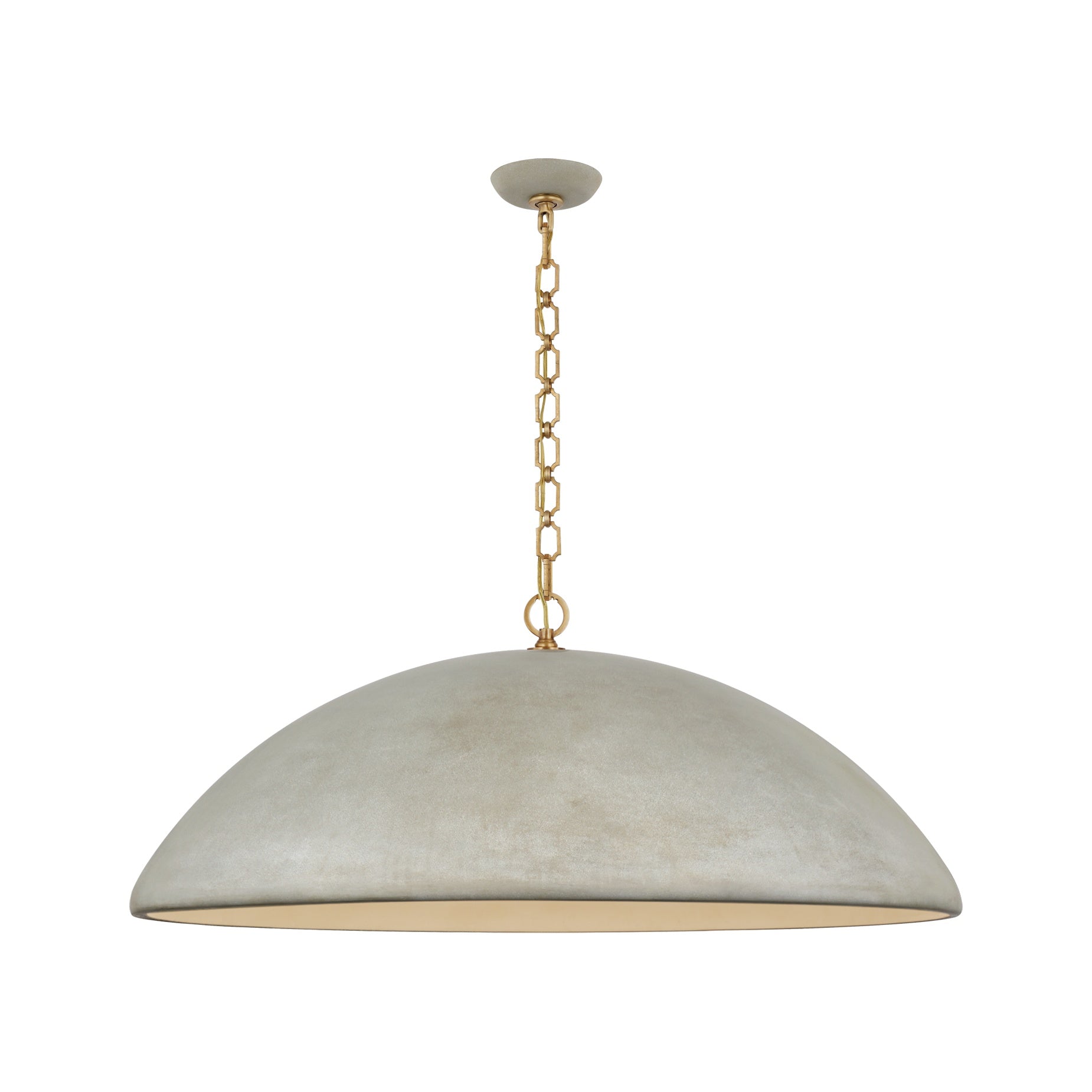 The Elliot by Suzanne Kasler features a rugged-yet-refined silhouette in lightweight concrete. The smooth, inverted dome, hanging from a slender chain, casts light perfect for kitchen islands or dining room tables.
