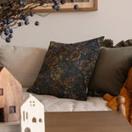 Our Estelle Pillow Cover showcases a moody floral motif on a dark background, printed in Japan. Tones of brown, plum and green all work together to create a vintage feel. Double sided for a truly luxurious feel, place this striking pillow anywhere you want to add some visual interest.
