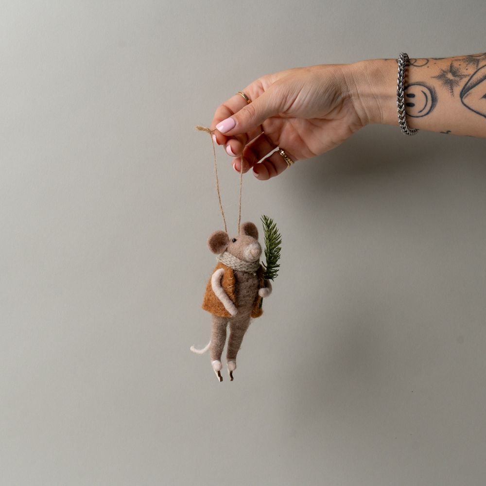 Evergreen Skating Mouse Ornament