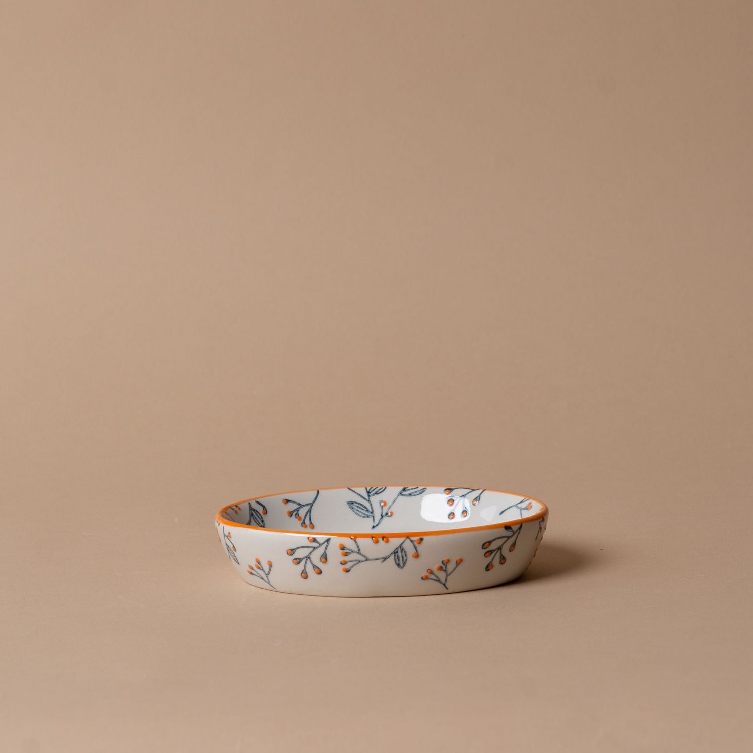 Experience the delicate elegance of this floral painted dish. The handmade design features intricate floral patterns, bringing a touch of sophistication to your bathroom. This versatile dish can also be used as a stylish jewelry holder, making it both functional and beautiful.