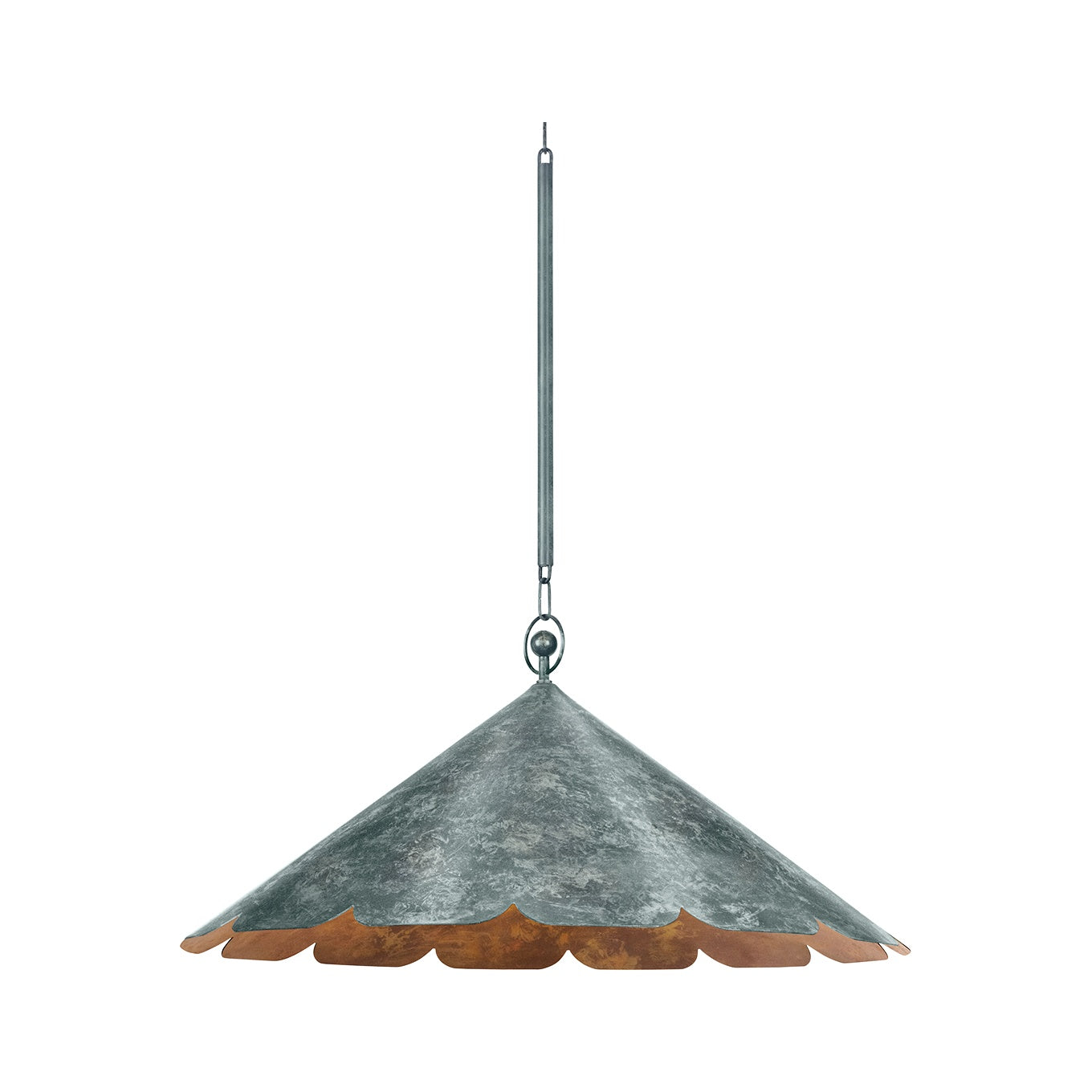 A true artisanal family, Folly Beach is lighthearted, sculptural, and a little unexpected. Inspired by the iconic shape of the Palmetto tree, the shade has a wavy, hand-sketched quality imbued with effortless charm. The rich Verdigris finish over steel brings coastal beauty into any space. Available as a lamp and a pendant in two sizes, Folly Beach adds an undeniable touch of whimsy to a bedside, kitchen, or living room.