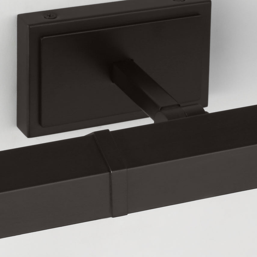 The Granby picture light showcases a contemporary and refined design that enhances the appearance of any artwork or interior setting.