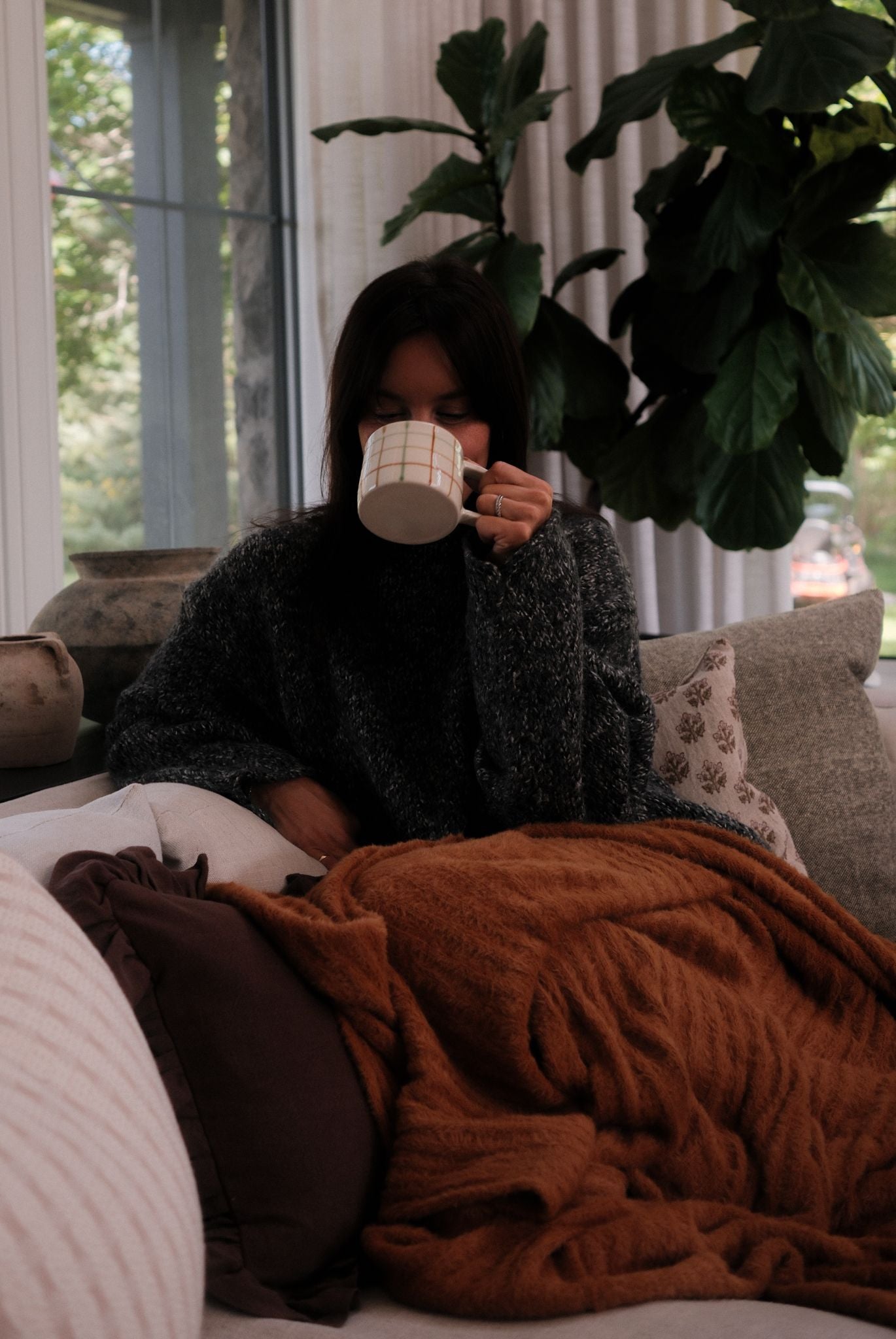 Green & Brown Grid Pattern Mug