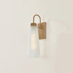 The Gulliver Wall Sconce takes inspiration from vintage Italian design, merging timeless elegance with contemporary style. Its elongated, tapered clear etched glass shade perfectly balances classic shapes with a modern edge. The mechanically knurled socket cup introduces a unique texture, while the Patina Brass finish and pronounced J-arm reflect the shade’s smooth contours, resulting in a cohesive and sophisticated fixture that enhances any interior setting.