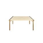 Bauhaus-inspired design gets a contemporary update with the Manifold collection. Featuring elegant, clean-lined tables that can stand alone or nest together, the well considered silhouettes optimize space with innovative design compatibility. The square coffee table serves as an ideal companion for sectionals or a grouping of armchairs, bringing people together for meaningful interaction. While the tabletop provides ample space to spread out, the slender metal legs contribute to an overall light, sleek aesthetic. Available in two combinations—Blonde Ash with Brass or Walnut with Pewter– each with the promise to elevate your space.