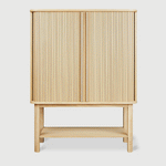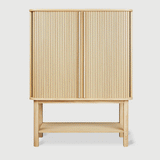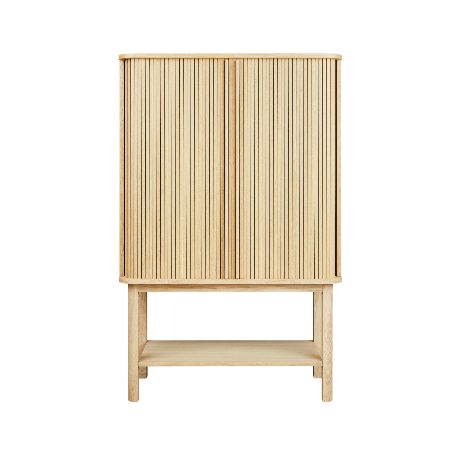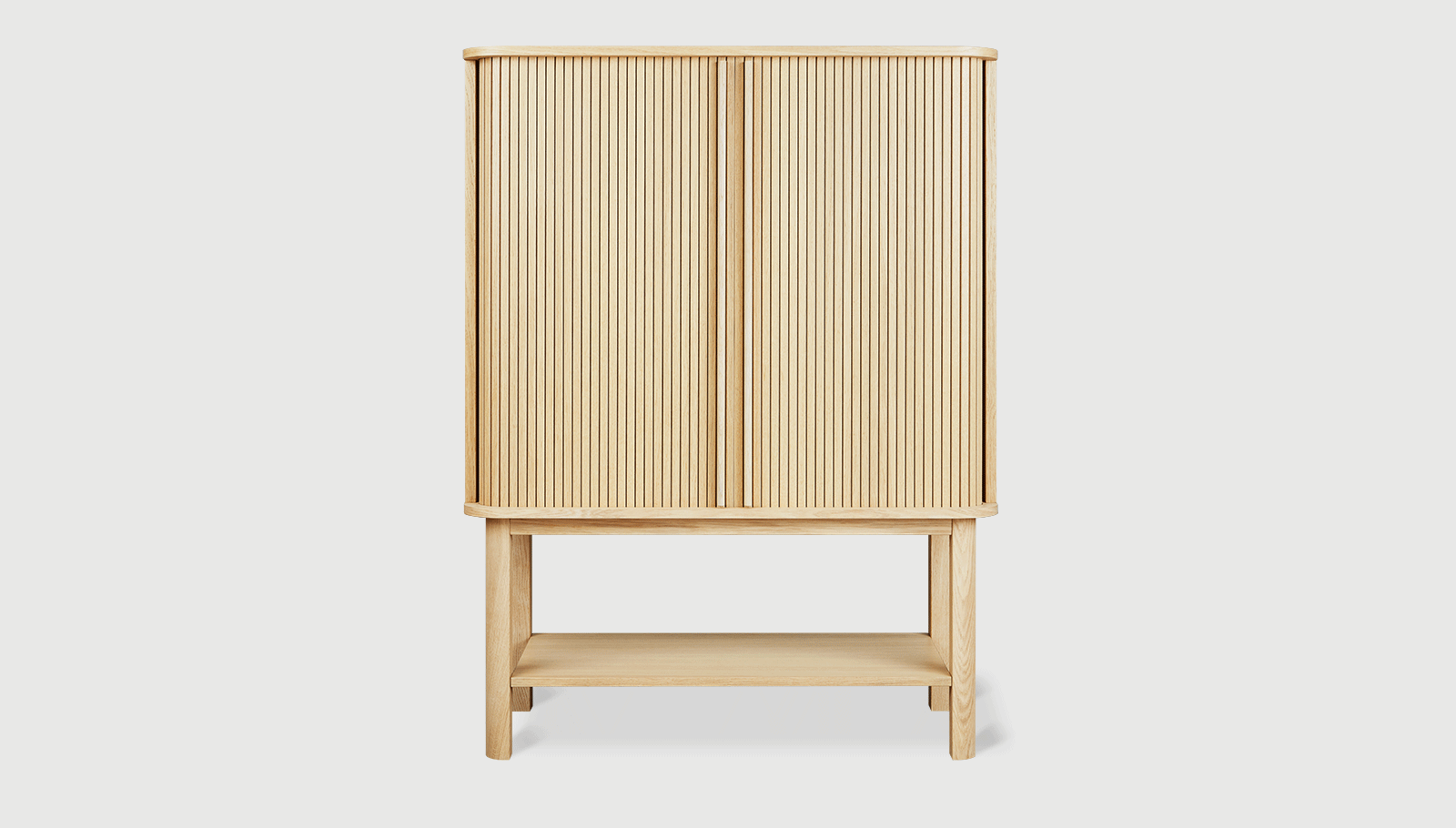 Stylishly reveal or conceal with Ledger, a contemporary storage design that showcases gorgeous tambour wood sliding doors, elegant proportions and skilled craftsmanship. Whether you’re looking for a clever solution to conceal clutter or an attractive way to display objects and collectibles, Ledger provides the answer. The tambour doors, which open smoothly into the back of the cabinet, prove that beautiful form follows function, displaying a simplicity of design engineering without the use of hardware and fasteners. Components incorporate graceful curve details and warm woodgrain protected with an all-natural, zero VOC finish. Solid and engineered wood throughout is FSC ®-Certified, ensuring material is sourced from well managed forests to support a healthy environment.