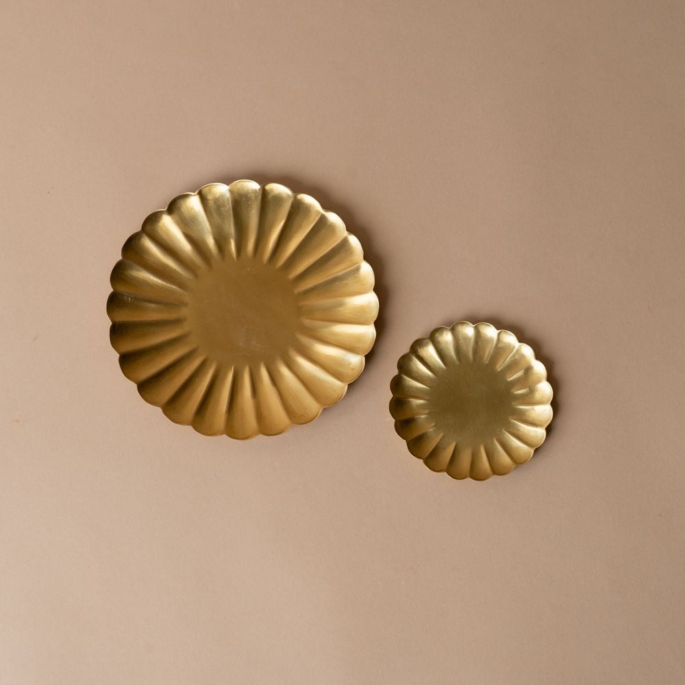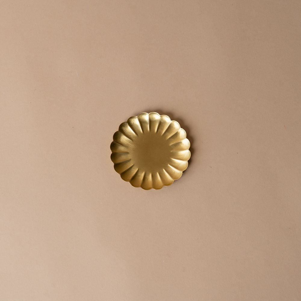 This brass dish features a petal-like design around the edges. Perfect for daily use, whether it's holding keys, accessories or treats.