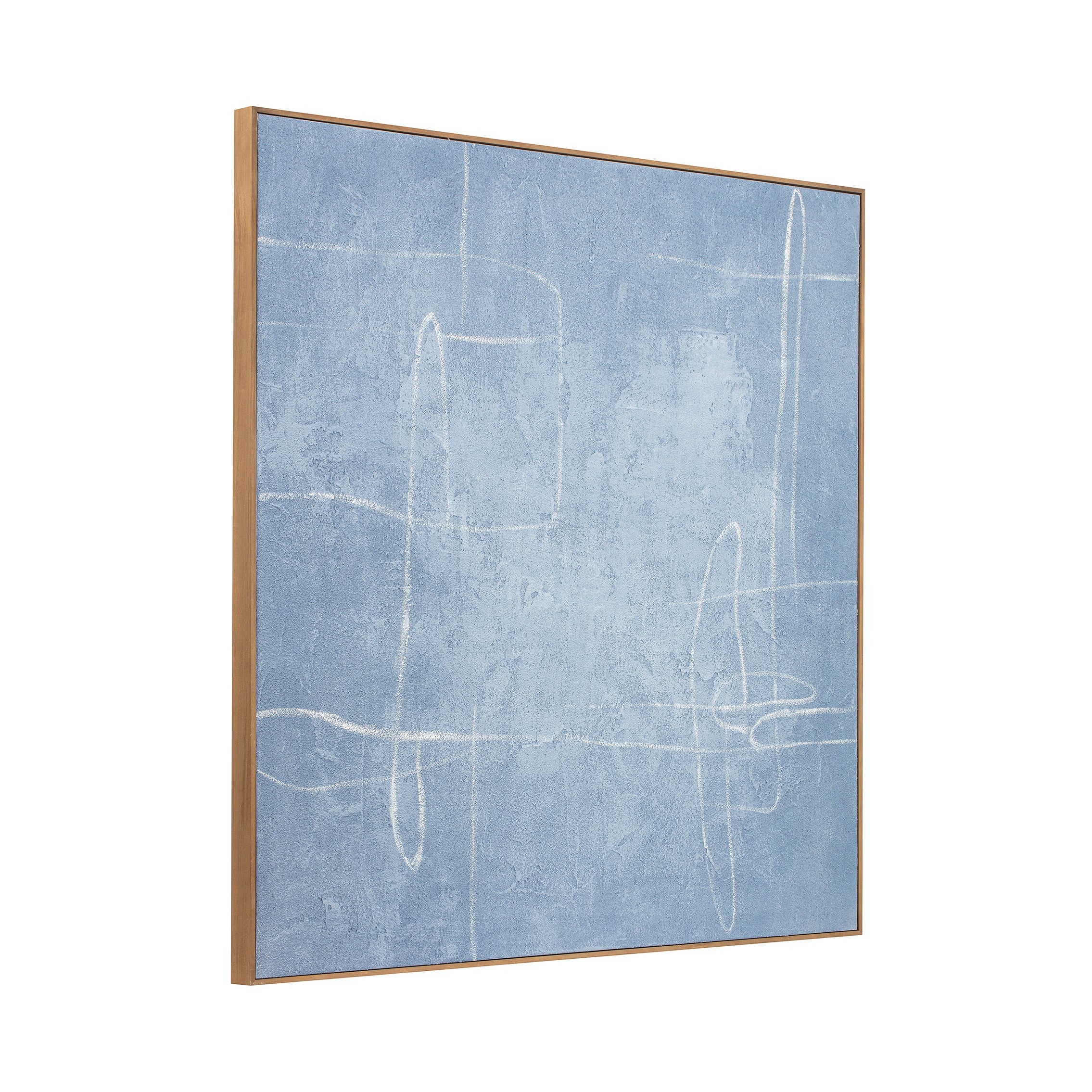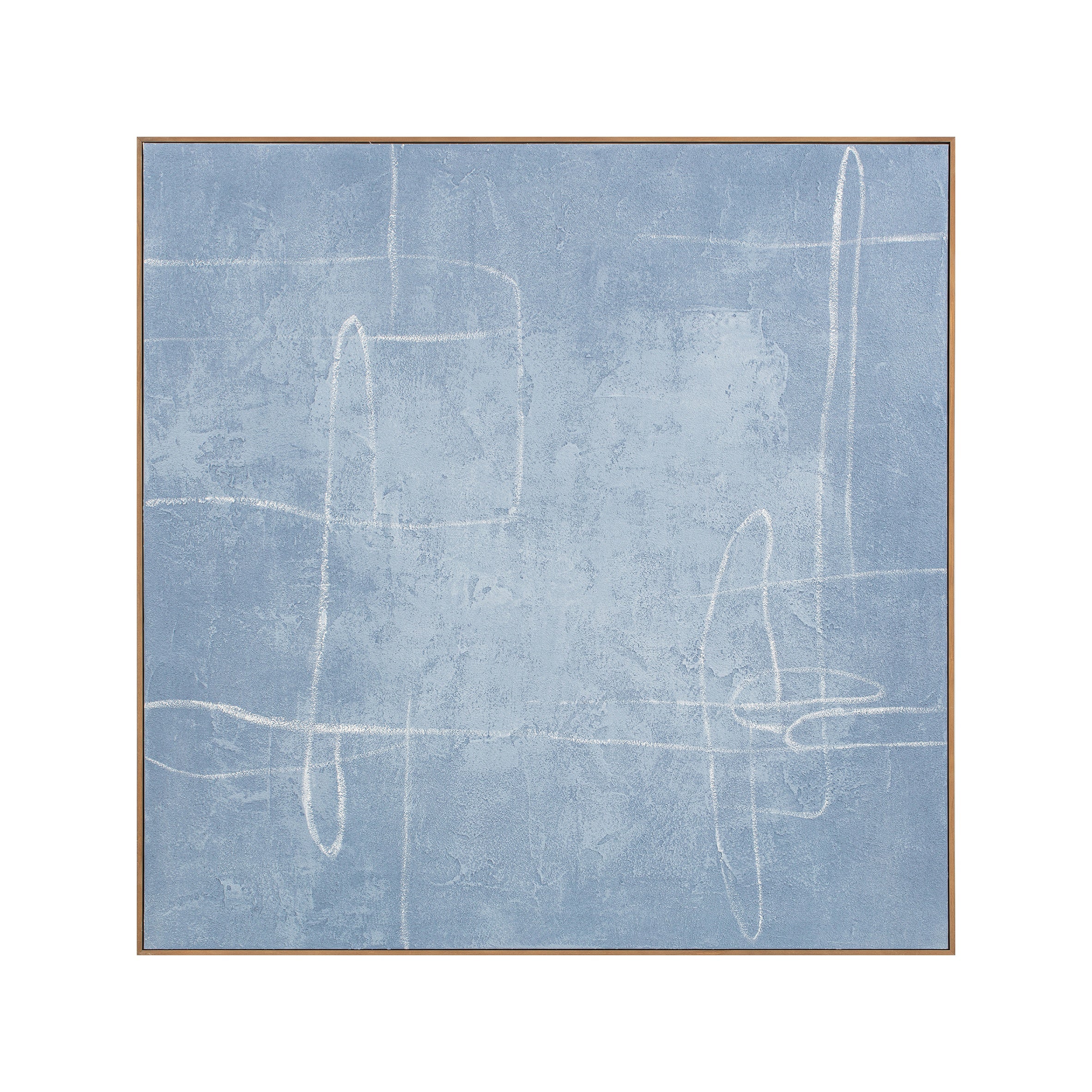 The Intra framed artwork exemplifies understated sophistication. This minimalist abstract composition draws attention through its elegant simplicity and quiet allure. Fluid lines sweep across a serene blue background, forming a contemplative visual terrain enhanced by the tactile dimension of textured paint.