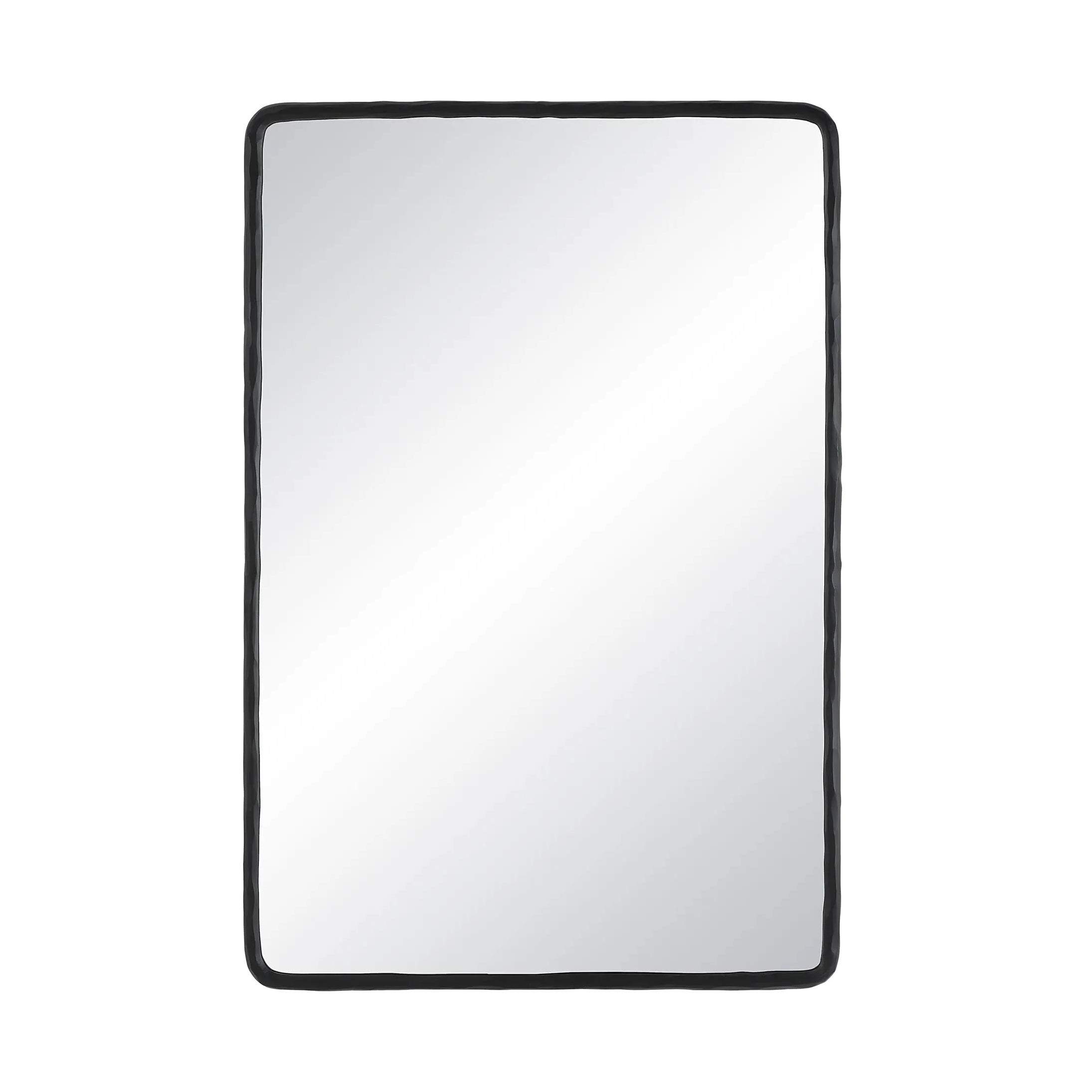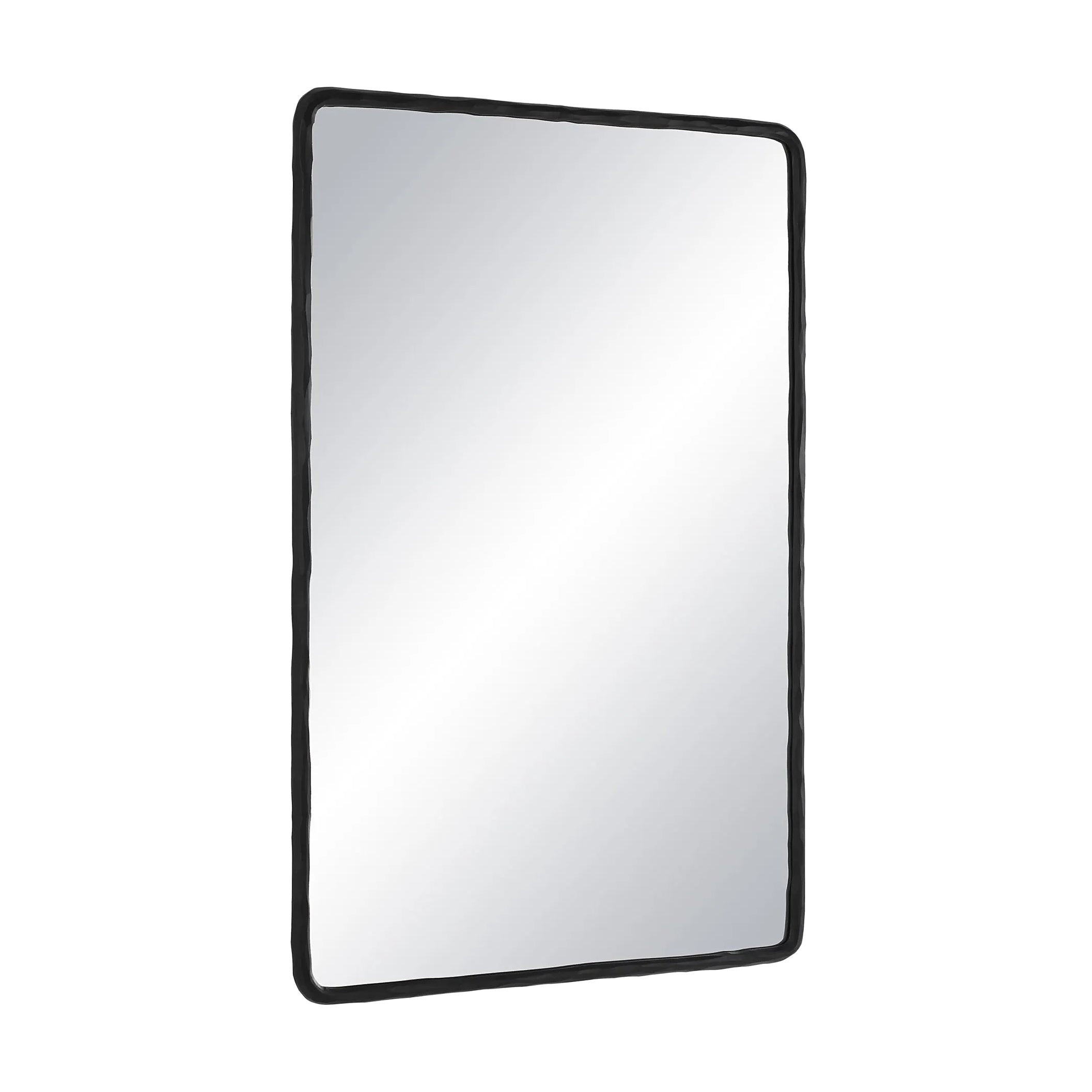 The Joren wall mirror combines modern style with functionality. Its durable cast aluminum frame comes in matte black or brushed antique brass and can be hung either way. The mirror’s rounded corners add a contemporary touch, while its high-quality glass ensures clear reflections and lasting shape.