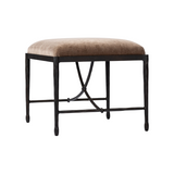 Elevate your space with the Jade Accent Stool. Featuring a curved stretcher base in bronzed hammered iron and a velvety seat in a versatile earth tone, this stool adds both style and function to any room. Use it to create an extra surface or provide extra seating wherever needed.
