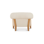 The Jasper accent chair features a smoothly curved back and refined fold-over detail, embodying a transitional tub-style design. Its soft upholstery shapes a streamlined profile, while plush cushioning offers inviting comfort. Exposed solid rubberwood legs with a wire-brushed finish contribute warmth and distinctive character.