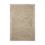 The Mabel Collection presents a chunky wool area rug that offers a contemporary interpretation of traditional Turkish motifs. Its design features a raised pile that adds depth and texture, complemented by a neutral stone color scheme suited for various spaces such as living rooms and bedrooms. Hand-tufted in India from wool and certified by GoodWeave, this rug reflects a commitment to ethical manufacturing and support for artisan communities. Wool rugs naturally shed, so regular vacuuming without a beater bar is advised to maintain its appearance.