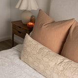 We are pleased to expand our capsule collection of long lumbar pillow covers with a new fabric option. The Lotus pillow cover is crafted from neutral cotton sourced from Thailand and adorned with a creamy lotus floral pattern. Designed specifically for your bed, and now offered in queen and king sizes, makes it simple to style with confidence.