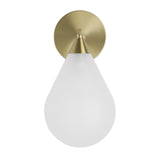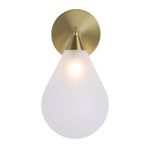 The Lume Wall Sconce features a teardrop etched glass shade on a burnished brass or matte black mount, providing soft ambient light. Hardwired with the included bulb, it offers a clean, wire-free look. Ideal for placing beside mirrors, nightstands, or reading nooks, it enhances any space with subtle elegance.