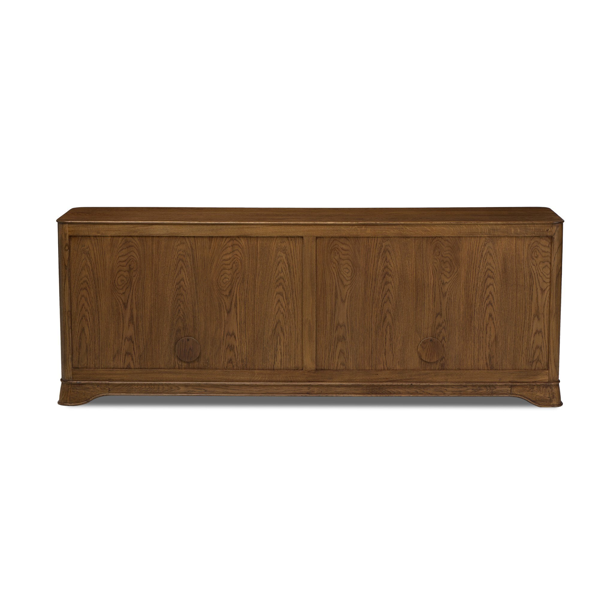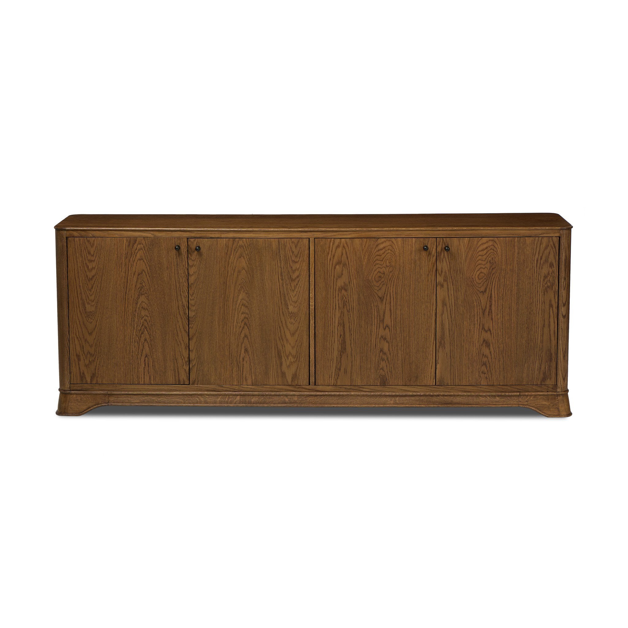 Crafted from natural oak and mango woods, this sideboard marries timeless design with refined ornamentation. Ornamental beading traces the curved base frame, while Baroque-inspired details elevate its understated box silhouette. Seamless metal hardware completes the piece with polished functionality and visual cohesion.