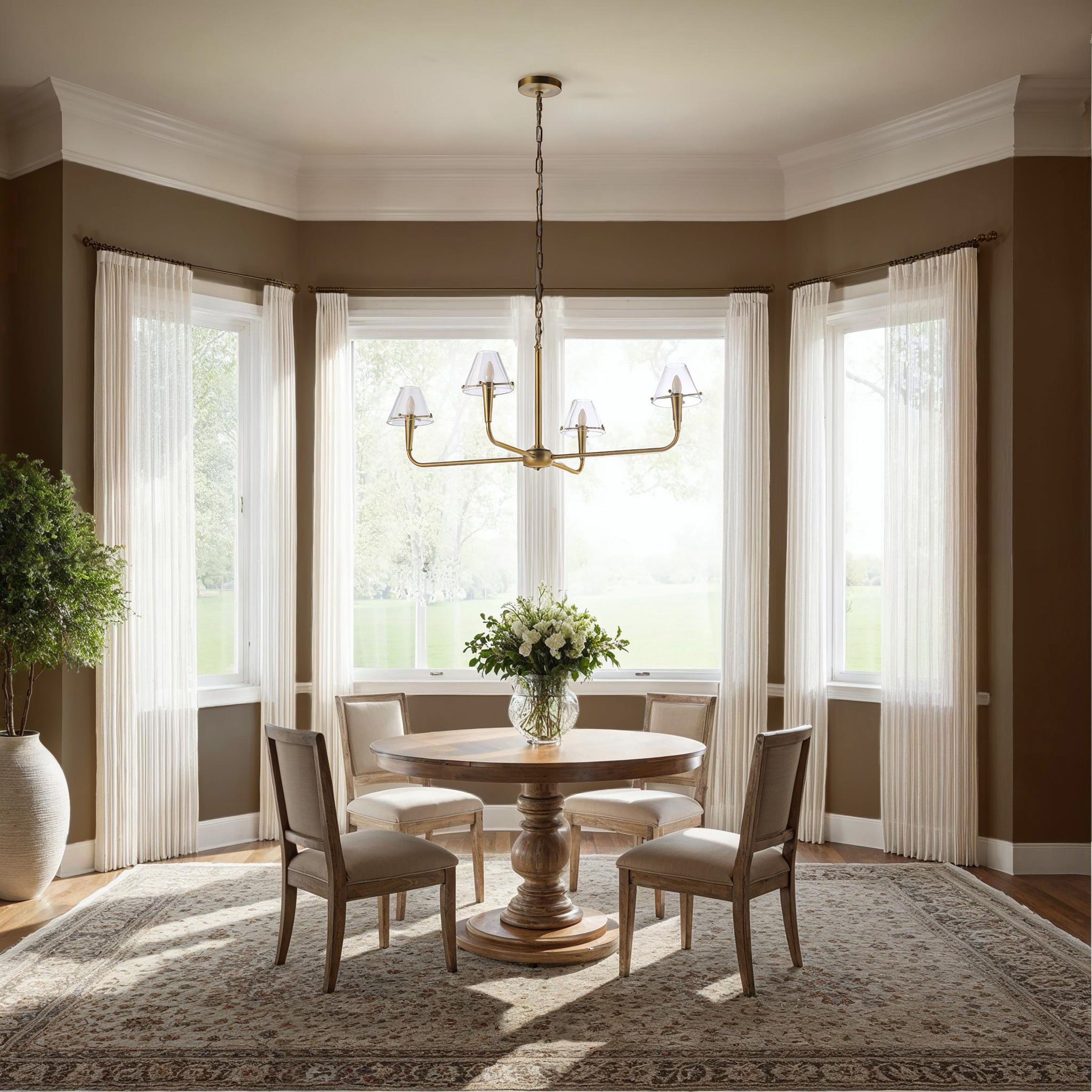 Enhance any room’s ambiance with this classically designed chandelier. Featuring a dark antique brushed brass finish, it showcases individual glass shades that provide soft, ambient lighting. The dimmable feature allows for easy adjustment, enabling you to create the ideal atmosphere with a simple switch.