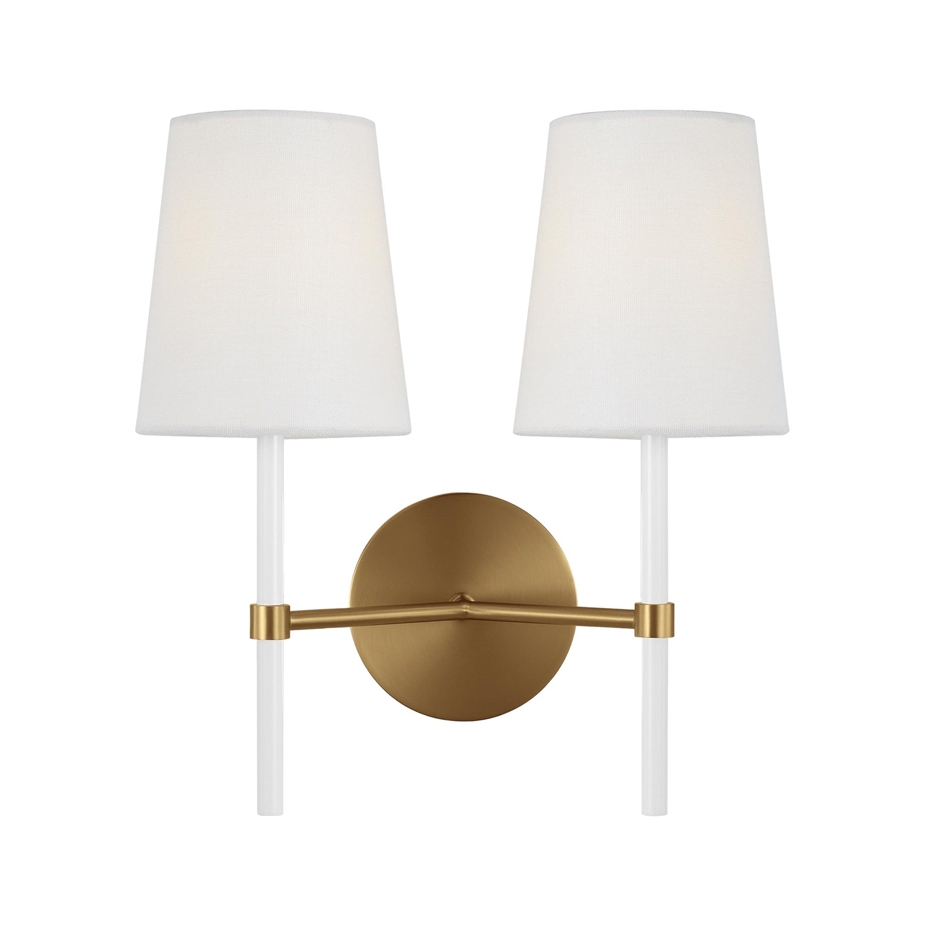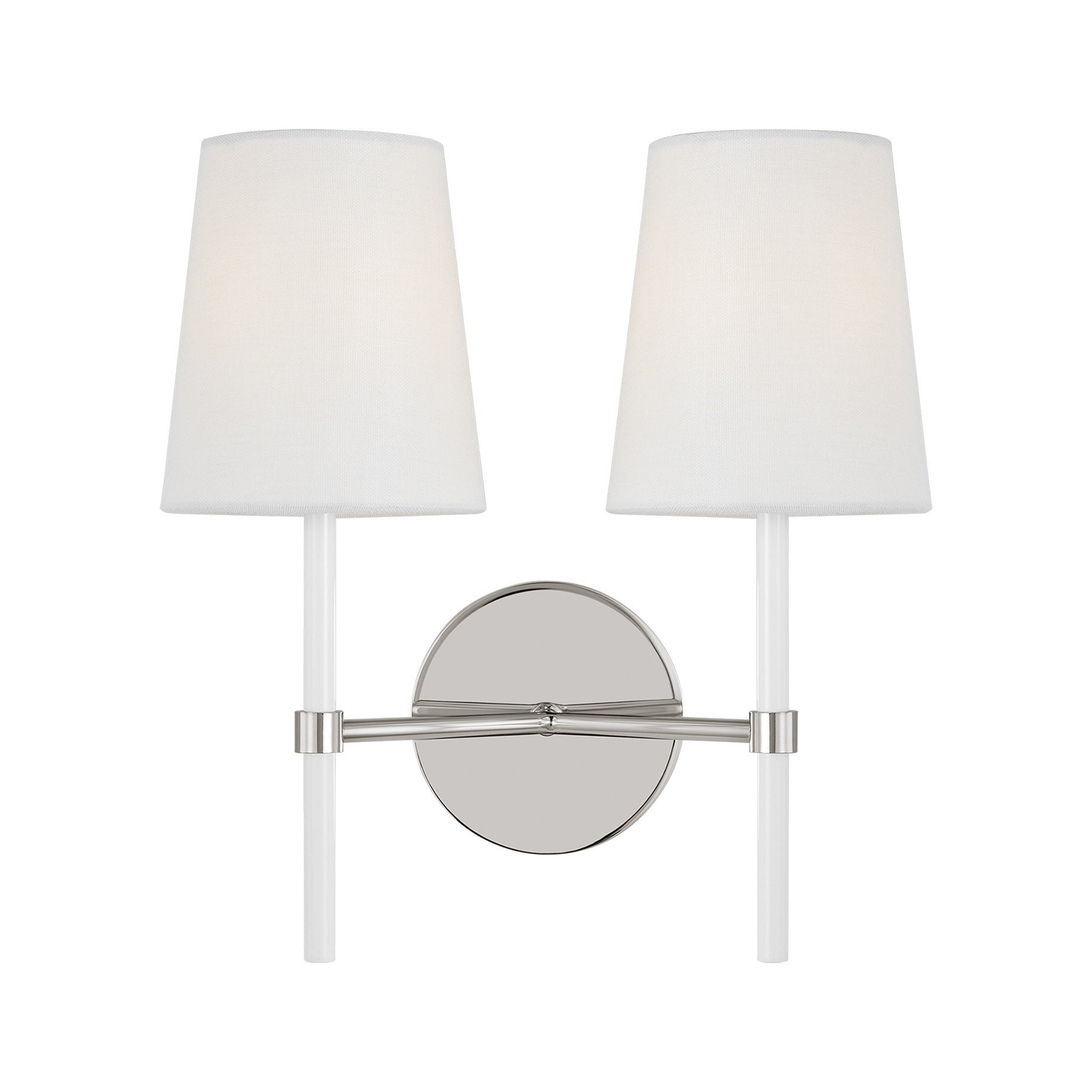 The Monroe Double Sconce presents a polished, tailored look by blending painted white enamel with metal, adding an engaging and distinctive character.