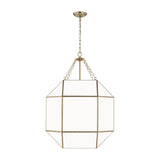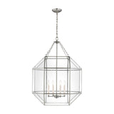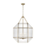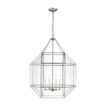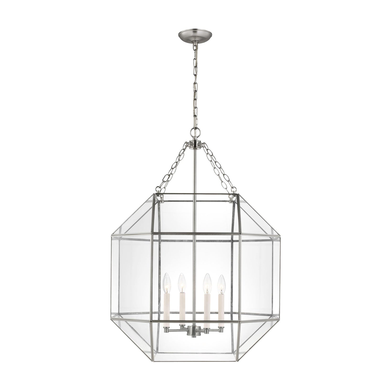 The Morrison Large Four Light Lantern showcases a geometric design available in brass or nickel finishes. It features clear or milk glass panes, offering a refined balance of classic and modern aesthetics to enhance any space with sophisticated illumination.