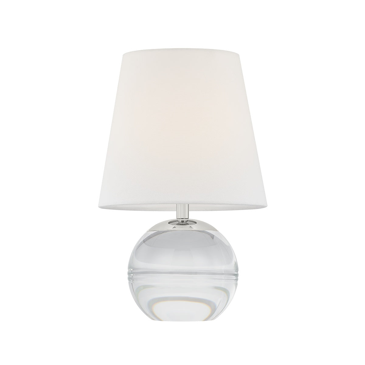 Ridged with ripple-like cuts, the crystal base of the Nicole table lamp makes for an eye-catching accent piece. Topped with a beautiful white linen shade, this pretty portable is rechargeable, adding convenience when styling. With classic Aged Brass-finished hardware, it’s the perfect addition to any bookshelf or small space.