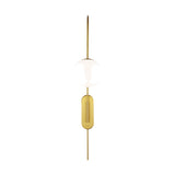The Noemie Grande Sconce by kate spade new york features a sleek curved arm holding a glowing milk glass orb. Its burnished brass finish and Art Deco-inspired design add elegant ambient light to hallways, entryways, or living rooms. Damp-rated for versatile placement, it combines modern style with timeless sophistication.