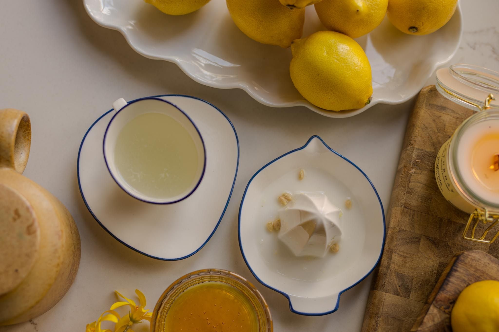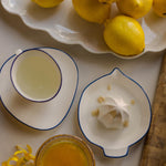 Start your mornings or embrace your afternoons with this handcrafted set. The irregular shape and unique blue rim are sure to be a favourite for years to come.