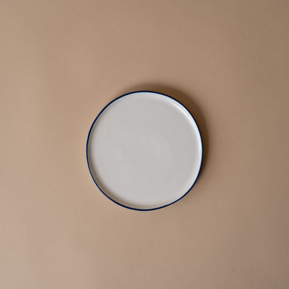 The irregular shape and unique blue rim of this handcrafted plate make it the perfect eye-catching addition to your table. Enhance your dining experience by using it as plate for treats, or use as a decor piece for storing trinkets.