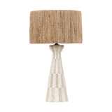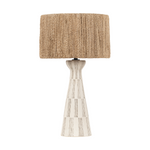 Named nostalgically for Nash’s native home in Florida, Palma is designed with a silhouette and textured sides that take cues from the palm tree. The detailed linework on the white ceramic body mirrors the weave on the natural string shade, creating a unified appearance. An exploration of verticality, while honoring its statement-making details. Part of our Loft and Thought collection.