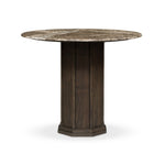 Drawing from classical European design heritage, the Pavlo Bistro Table marries timeless aesthetics with practical functionality. Its distinctive octagonal base, crafted from dark brown acacia wood, echoes the grandeur of traditional Greek architectural elements while the warm brown marble top provides both durability and visual sophistication. This compact yet substantial piece transitions seamlessly across interior styles, from eclectic dining rooms to intimate kitchen corners, offering the refined character of 18th-century antiques with contemporary versatility.