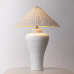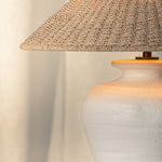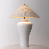 Designed in honor of the matriarchal figure in Julie Dash's "Daughters of the Dust," the Pezante lamp is a vision of regal, coastal elegance. Elements of the novel are translated into design features, with the ceramic urn-shaped base inspired by white dresses and the bleached Abaca shade recalling straw hats. Rooted in heritage yet with contemporary simplicity, Pezante writes a new story for modern spaces. Part of our Loft and Thought collection.