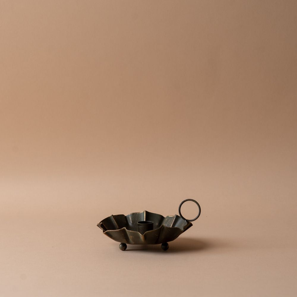 Add a touch of whimsy to your space with this Primitive Floral Candle Holder. Expertly hand-forged from iron, its design mimics the delicate curves of flower petals, while a soft green shimmer brings a playful glow. Perfect for brightening dining tables, nightstands, or entryways, it effortlessly blends with any decor style to create a charming and unique ambiance.