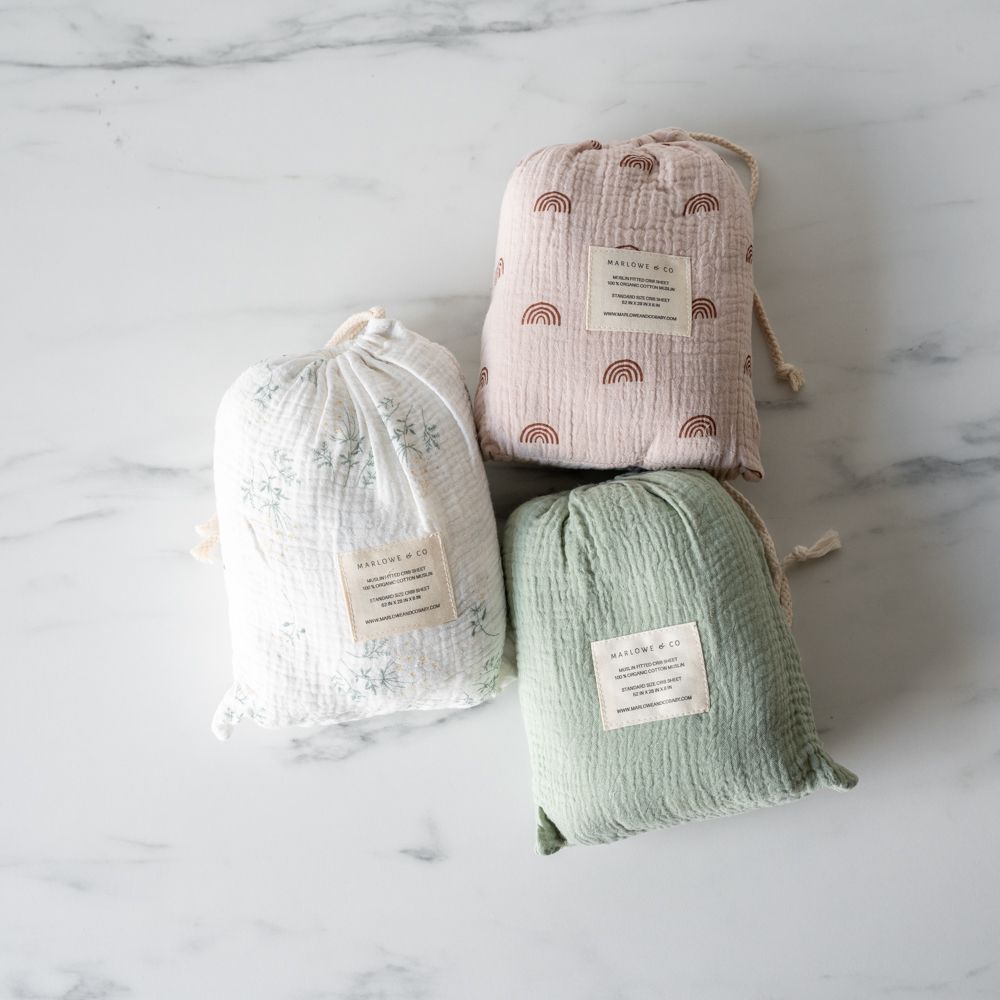 These crib sheets are timeless and simple, to be appreciated by parents and babies alike. With an adorable pattern of tiny rainbows, the breathable 100% cotton muslin sheets will keep your little one comfortable throughout all seasons, and from newborn days to toddler years.