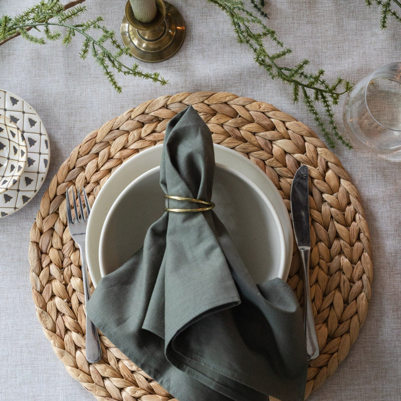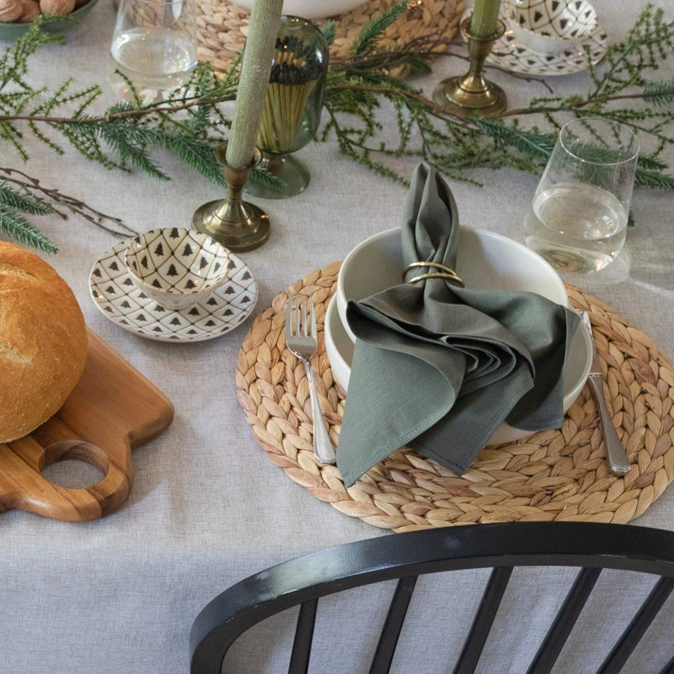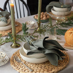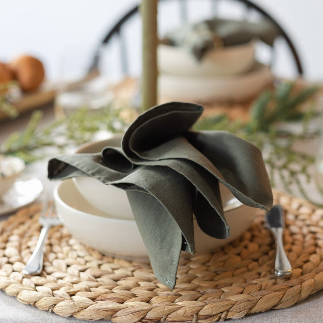 We are thrilled to introduce a new grouping of in-house made napkins sets, perfect for the Fall season. A blend of linen and cotton in a super soft washed finish, available in three seasonal shades of Natural, Copper and Sage. Each set is hand cut and sewn in our Guelph studio. Set your table in style with our new table linens, adding a touch of colour and warmth.